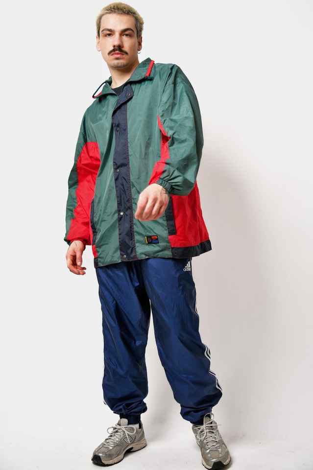 แจ็กเก็ตกันลมมีฮู้ดแบบวินเทจแจ็คเก็ตสีเขียวสีแดงย้อนยุค80S น้ำหนักเบาในช่วงเทศกาล90s โค้ทกันฝนเปลือกหอยสำหรับฤดูใบไม้ร่วง