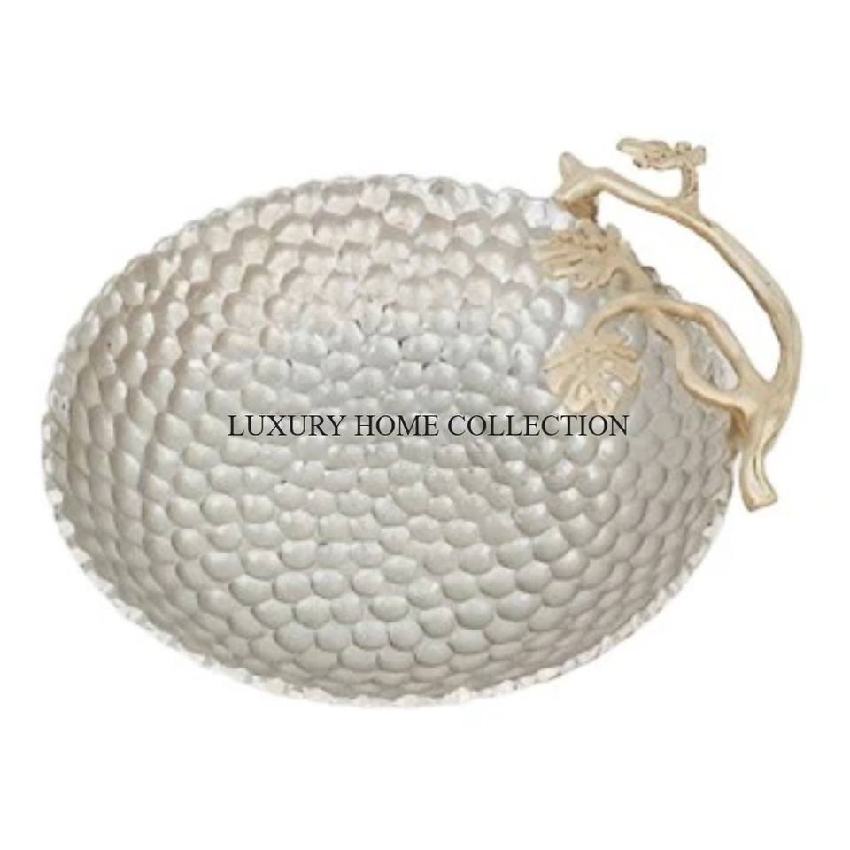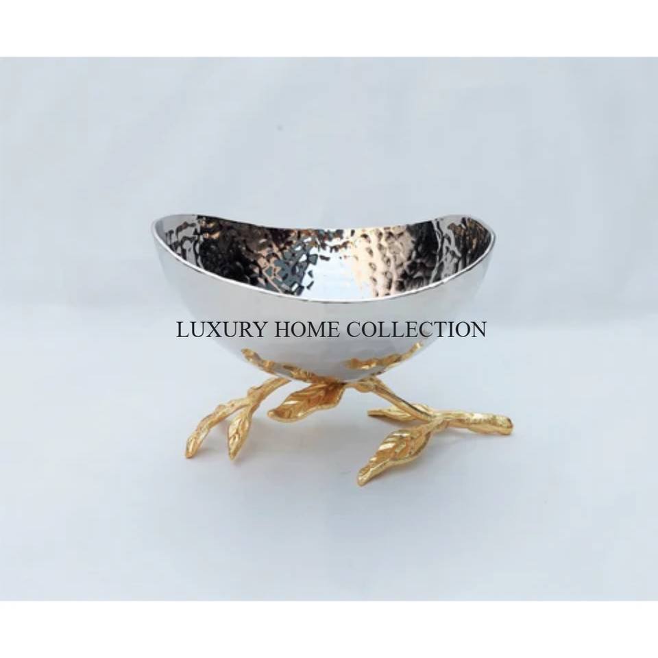 ชามอลูมิเนียมที่ได้รับแรงบันดาลใจจากวินเทจที่มีดีไซน์โบราณที่ซับซ้อนและมีรูปทรงที่โดดเด่นสำหรับการจัดวางโต๊ะหรู