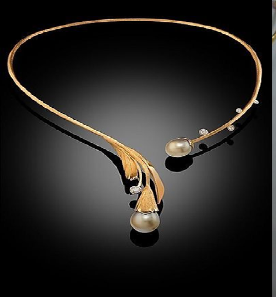 ปลอกคอตาข่ายสีทองสไตล์วินเทจ ประดับมุกคู่และปีกสีทองมีลวดลาย คลาสสิก มีจำหน่ายในราคาขายส่ง