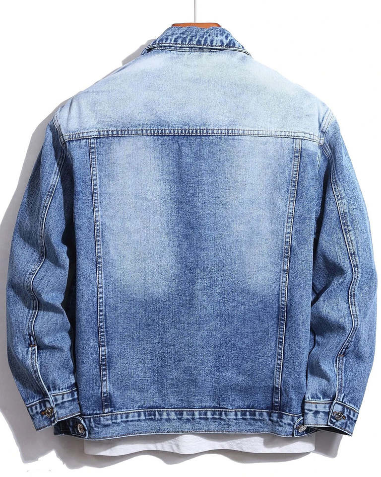 แจ็คเก็ตยีนส์ผู้ชายสไตล์วินเทจสำหรับสวมใส่ลำลอง ผลิตจากผ้าที่ทนทาน ทรงทันสมัย และให้ความรู้สึกโดดเด่นแบบแฟชั่นสตรีท