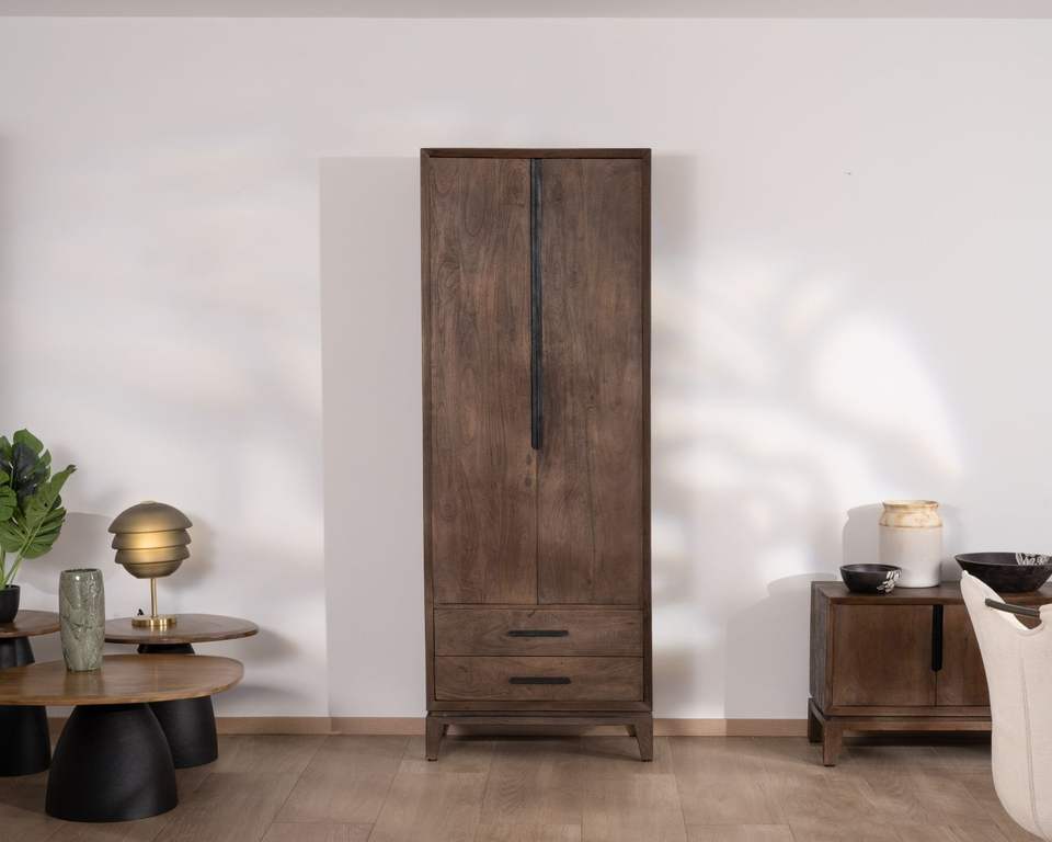Vintage mango wood wardrobe with doors and low drawers Slody