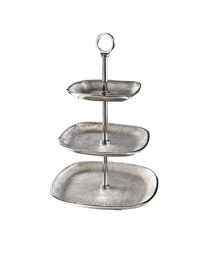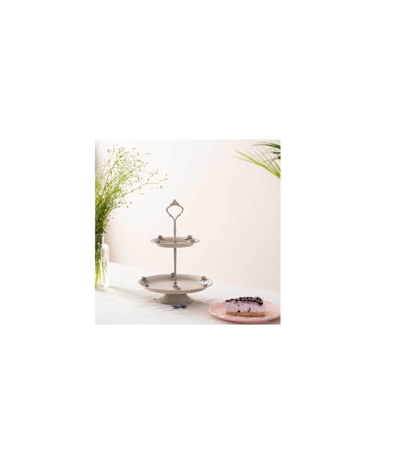 ที่ตั้งเค้กโลหะปาติน่าแนววินเทจสร้างขึ้นด้วยมือเพื่อมอบเสน่ห์แบบชนบทสำหรับงานแต่งงานและการจัดแสดงเบเกอรี่