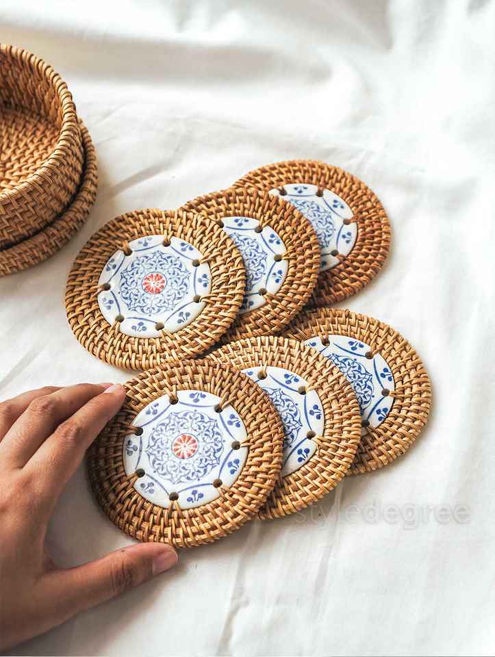 model number:Holiday Rattan Porcelain Coasters 4
