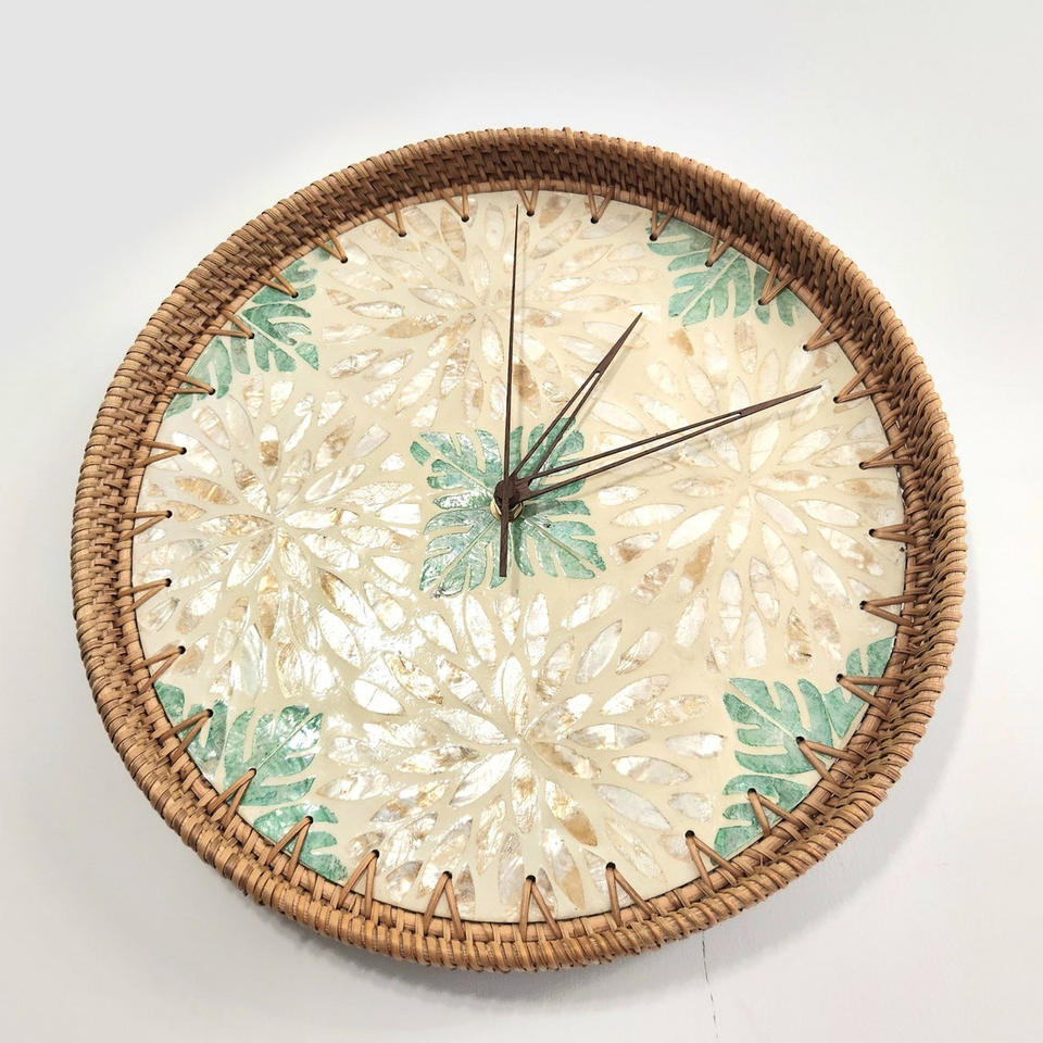 นาฬิกาแขวนผนังหวายโบราณประดับมุก งานตกแต่งบ้านที่โดดเด่น
