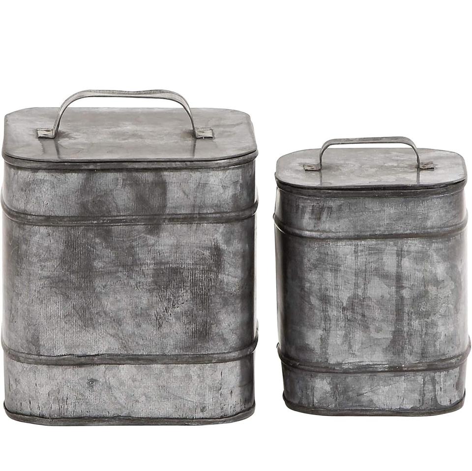 ชุดถังโลหะชุบสังกะสีสไตล์วินเทจสำหรับบ้านไร่แบบชนบท2ชิ้นภาชนะใส่อาหารในครัวพร้อมฝาปิดตู้กับข้าว