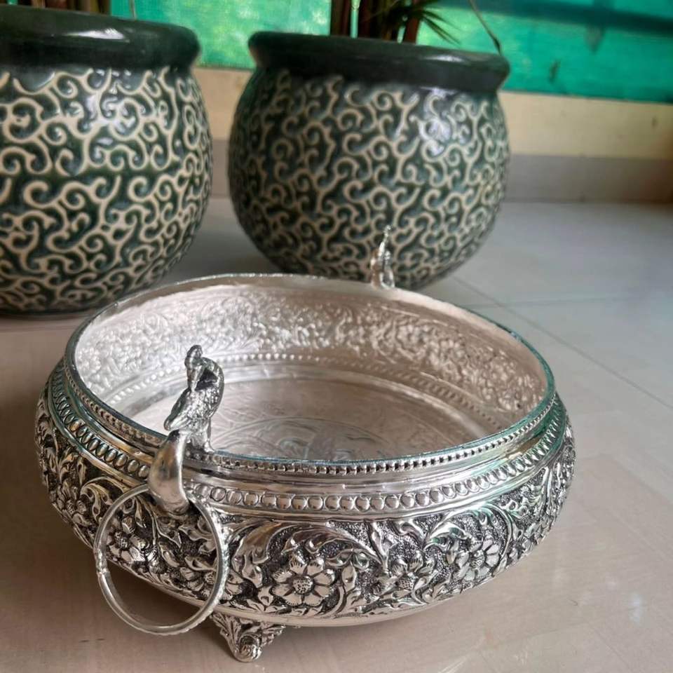ชามโลหะ urli สไตล์วินเทจทำด้วยมือสำหรับการตกแต่งบ้านที่หรูหราและการตกแต่งงานเฉลิมฉลองมงคล