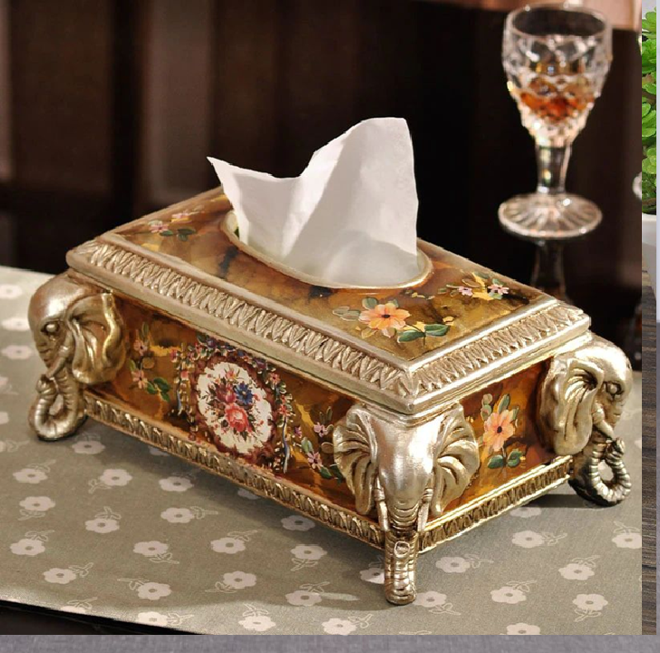 ที่ใส่กระดาษทิชชูสไตล์วินเทจสีบรอนซ์ พร้อมลายแกะสลักช้างอย่างประณีต สำหรับตกแต่งบ้านให้เข้ากันกับการตกแต่งภายใน มีจำหน่ายในราคาขายส่ง