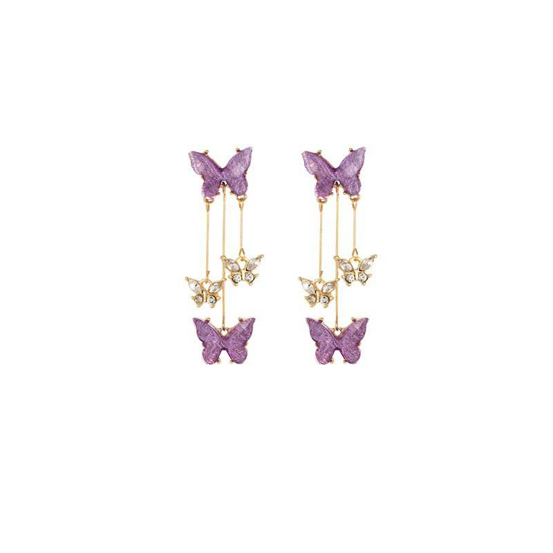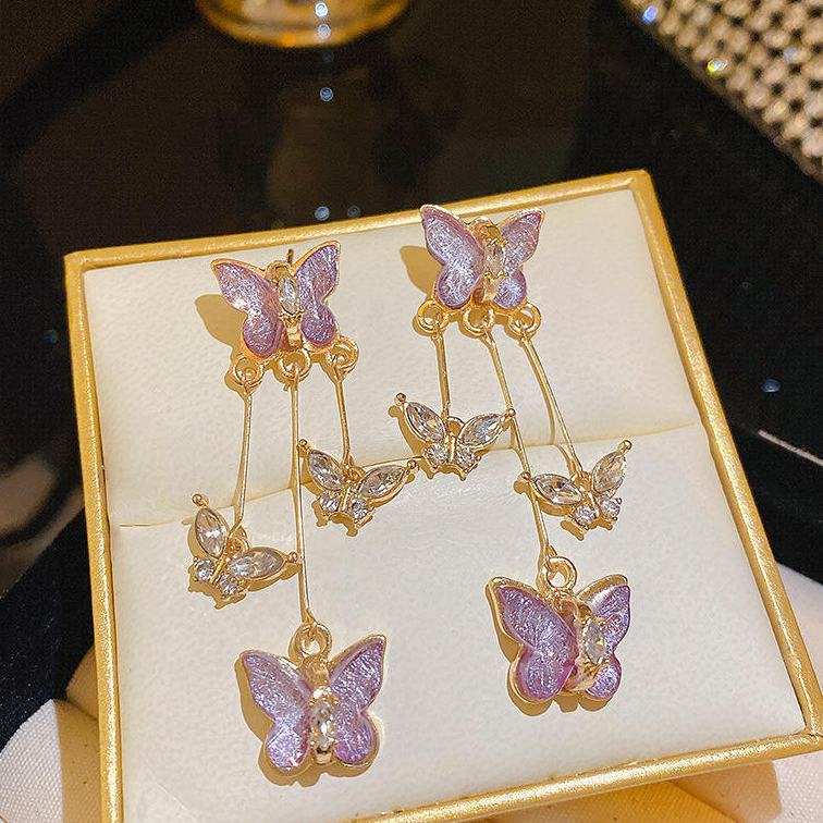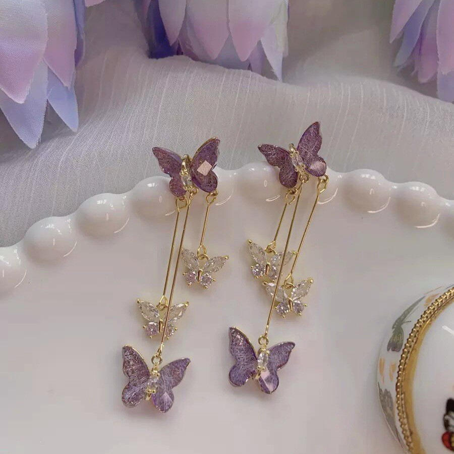 ต่างหูยาวสไตล์วินเทจคุณภาพสูง เครื่องประดับแฟชั่นผู้หญิงรูปผีเสื้อประดับมุกและพู่ห้อย พร้อมเพชรซิร์คอน