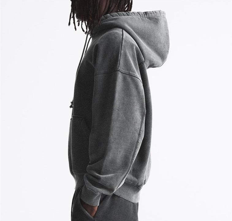 เสื้อฮู้ดขนแกะเฮฟลีซขนาดใหญ่พิเศษสำหรับผู้ชายเสื้อสวมหัวมีฮู้ดฟอกสีซีดมีโลโก้ที่กำหนดเองสไตล์วินเทจ