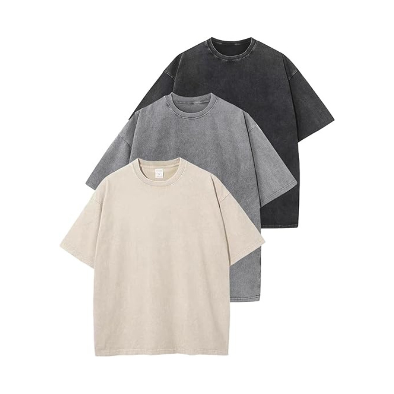 เสื้อยืดโอเวอร์ไซส์ล้างวินเทจ3แพ็ค | เสื้อยืดทรงหลวมแนวย้อนยุคของผู้ชาย | เสื้อสตรีทแวร์ผ้าฝ้ายเนื้อนุ่ม