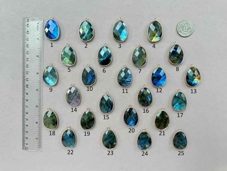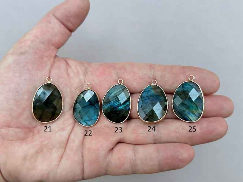 สร้อยคอจี้ลาบราดอไรต์เจียระไนเคลือบทองวินเทจอัญมณีสีเทาธรรมชาติพร้อมเครื่องประดับยาวสำหรับการหมั้น