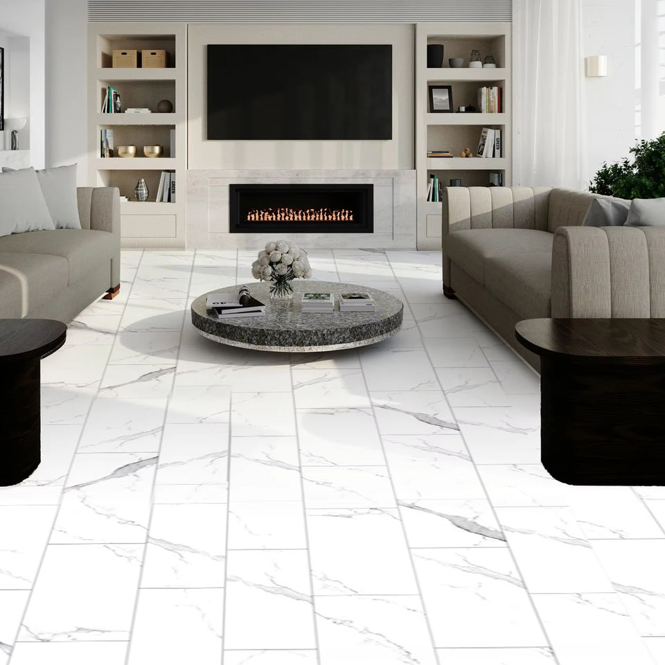 พื้นไวนิล SPC ระบบคลิ๊กล็อค ลายก้างปลา และลายหินอ่อน VOC ต่ำ เป็นมิตรกับสิ่งแวดล้อม