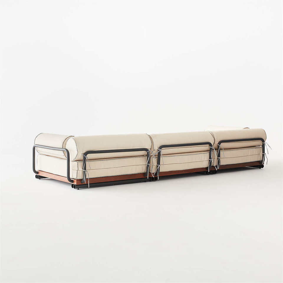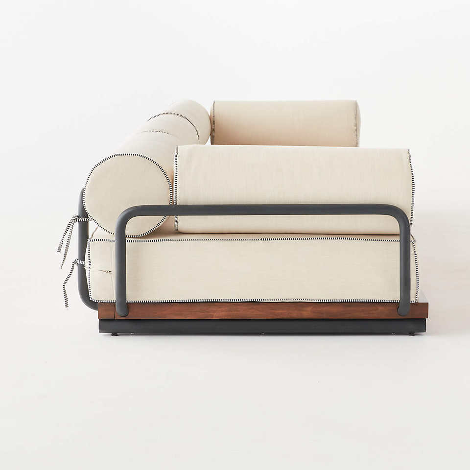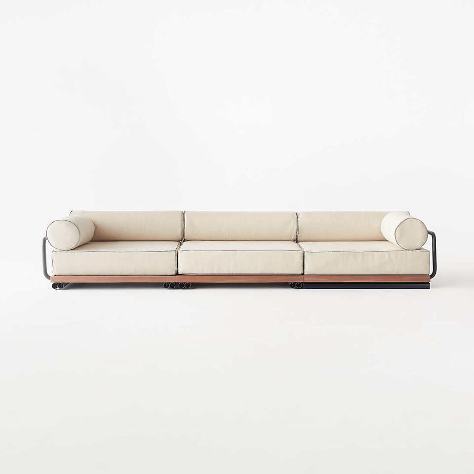 โซฟาสำหรับใช้งานภายนอกสไตล์โมเดิร์น โครงสร้างอะลูมิเนียมและฐานไม้สักแท้