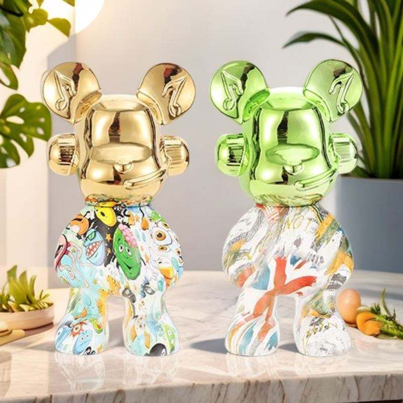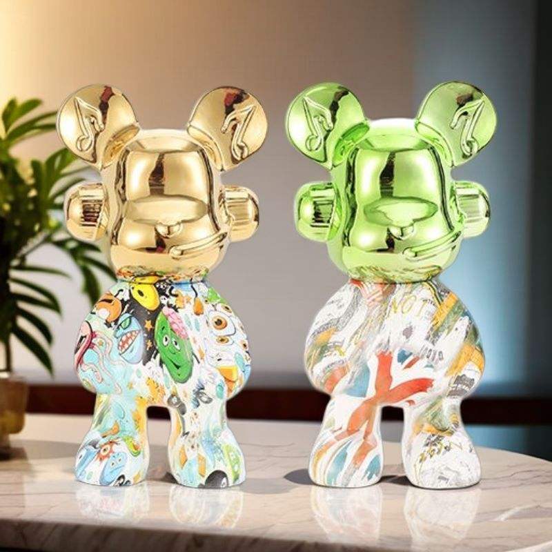 งานศิลปะเรซิ่นรูปหมีดุร้าย ของตกแต่งพื้นห้องนั่งเล่น ของตกแต่งบ้าน สไตล์หรูหราเบาๆ แบบนอร์ดิก ตุ๊กตาตั้งโชว์ตู้ทีวี ทางเข้าบ้าน