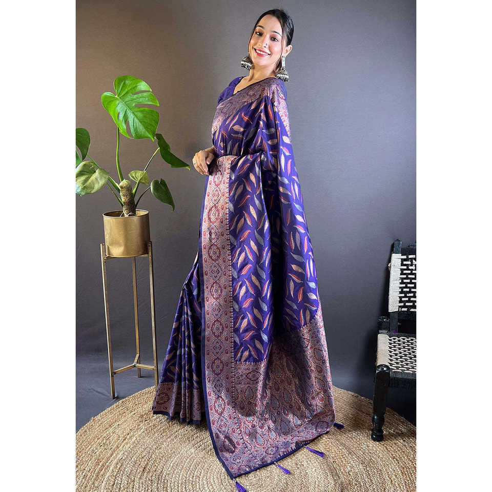 ผ้าไหมสีม่วงอ่อนแบบอีลิทวีฟส์ ลายปักสามเส้น งานทอประณีต เหมาะสำหรับใส่ไปงานเลี้ยง