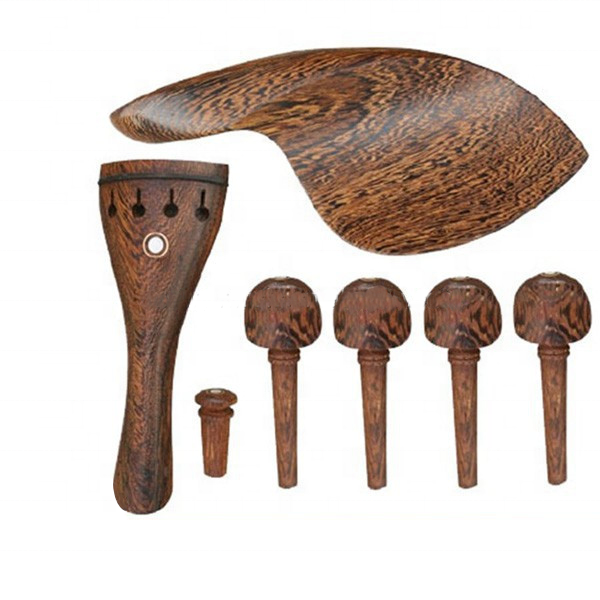 ชุดชิ้นส่วนไวโอลินไม้ปีกไก่ Wenge พร้อมอุปกรณ์ไวโอลินฝังเปลือกพร้อมหมุดส่วนคางและหมุดปลาย