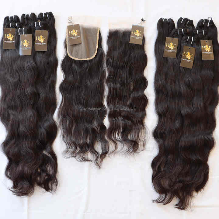การรวมกลุ่มผมคลื่นลึกบริสุทธิ์กับการปิดลูกไม้ด้านหน้า5X5 6X6ที่มีการรวมกลุ่มอินเดียหยิกรวมกลุ่มผมดิบกับการปิด HD บาง