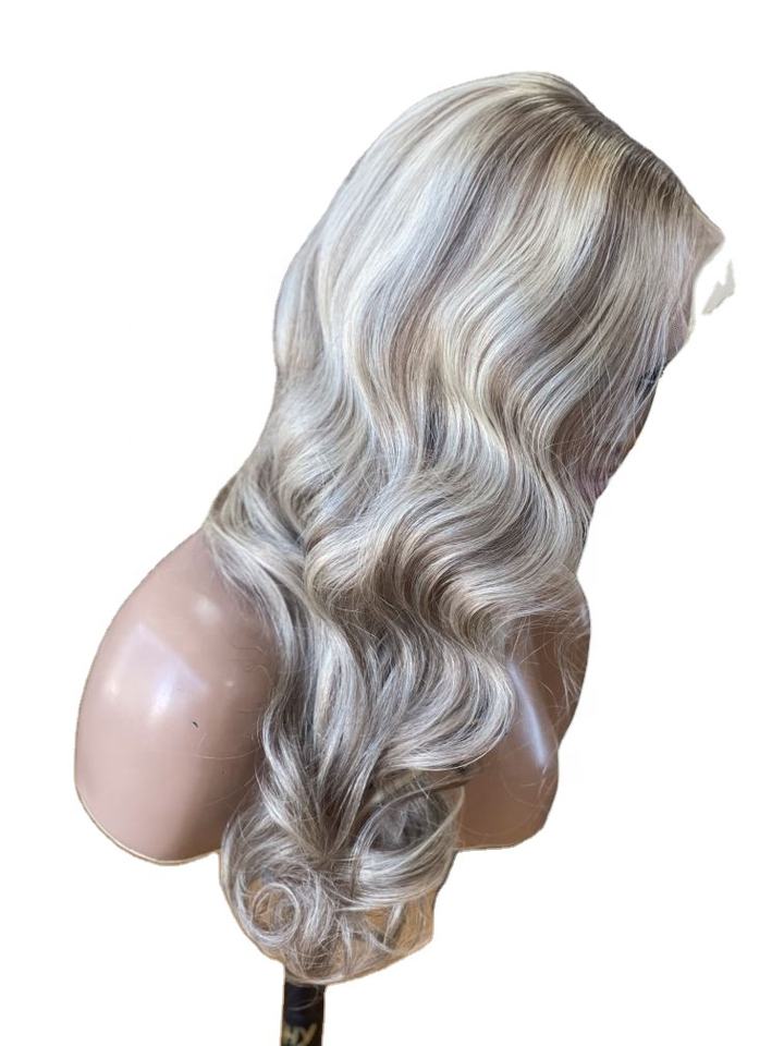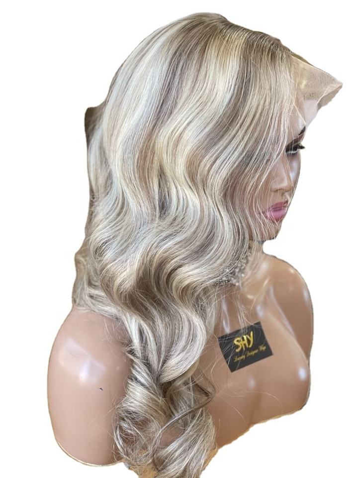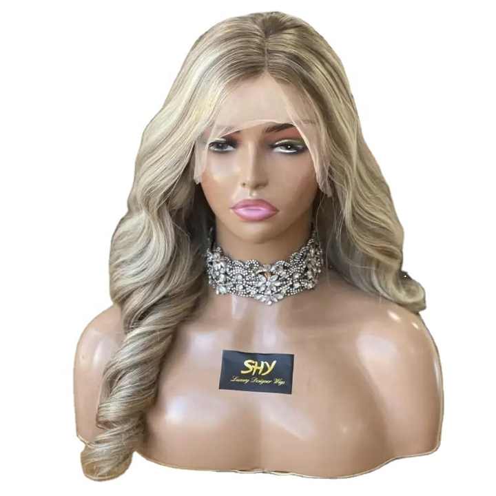 วิกผมลูกไม้แบบยุโรปแท้ ทรงบอดี้เวฟ สีบลอนด์ไฮไลท์ สำหรับผู้หญิงผิวขาว ความหนาแน่น 150% พร้อมลูกไม้โปร่งใส มีสินค้าในสต็อก