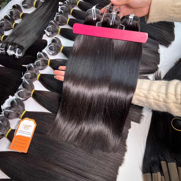 ผมต่อเวอร์จิ้นเกรด 12A คุณภาพดีที่สุด ผมแท้เวียดนามแบบเป็นมัด ความยาวเต็ม พร้อมเชือกปิดผม แบบซุปเปอร์ดับเบิ้ลดรอน