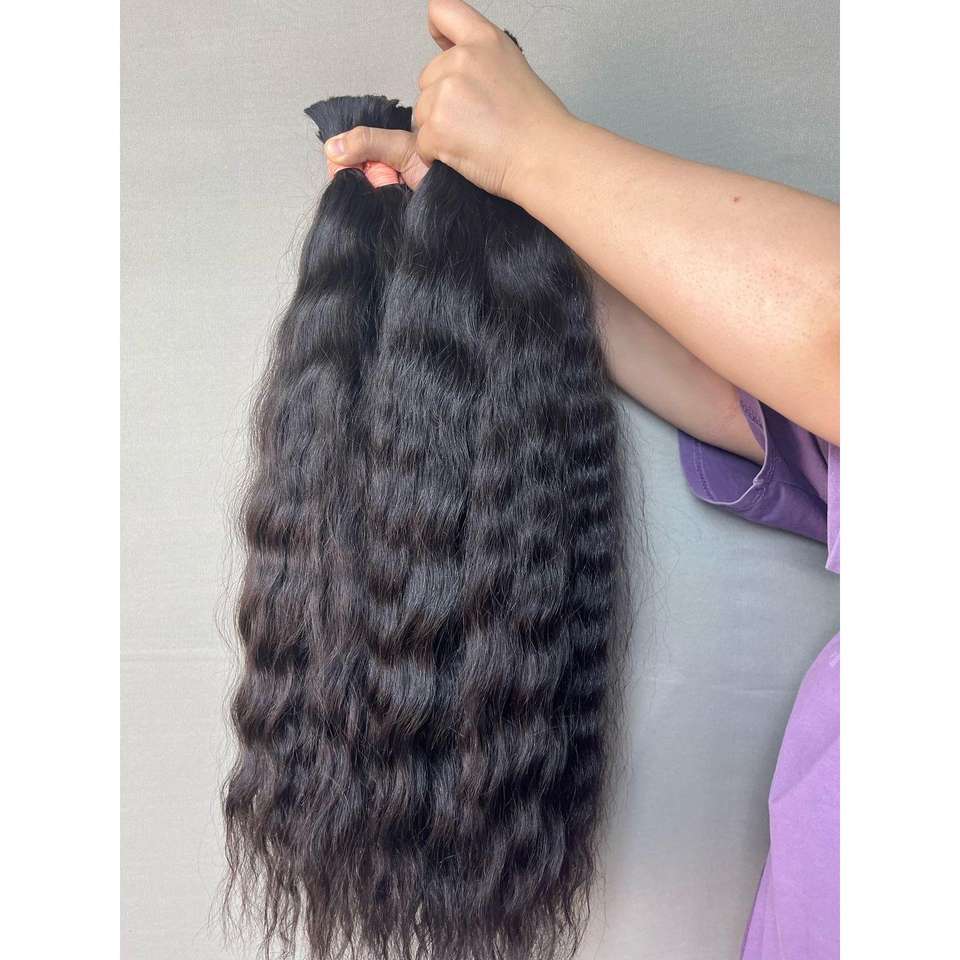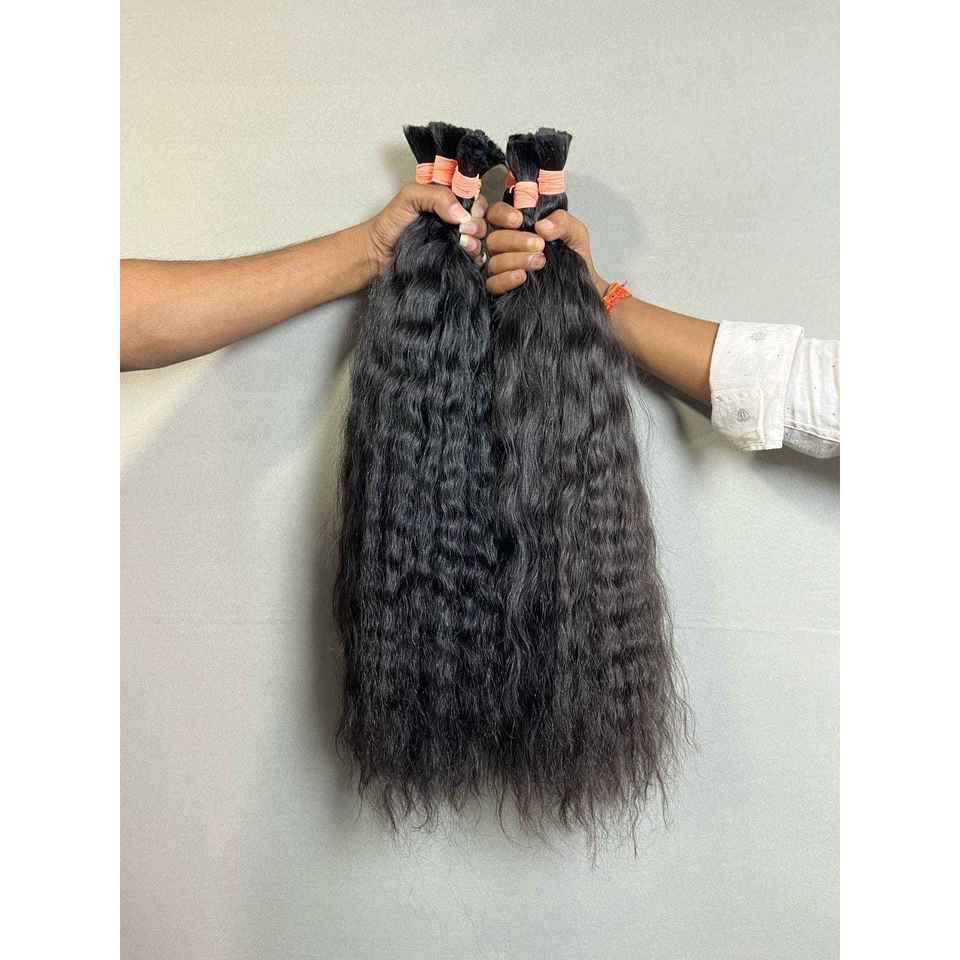Gaurash Beauty Supply Virgin Indian Curly Bulk Hair Weft Raw Natural 18-Inch Wig One Donor Deep Wave Straight Styles Human Hair