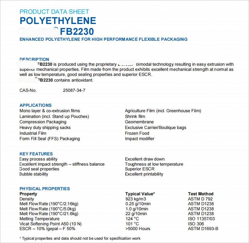 หมายเลขรุ่น:LLDPE FB2230