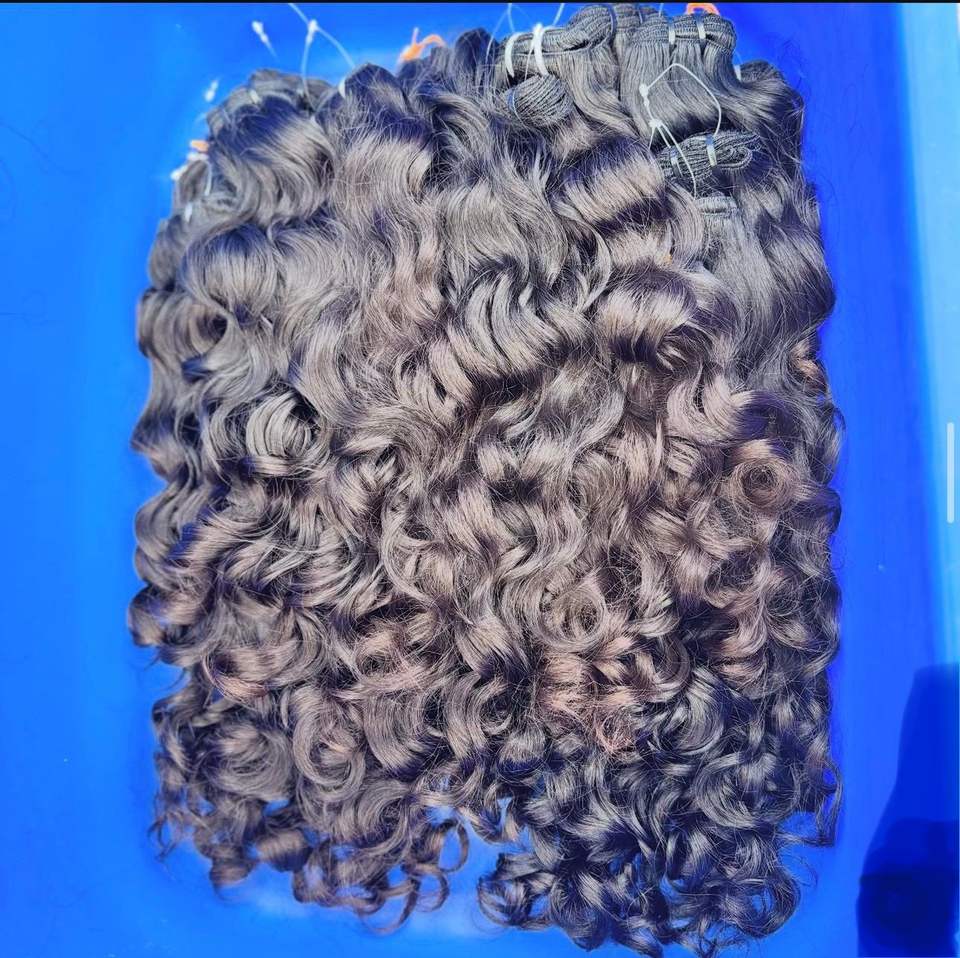 ผมต่อผมมนุษย์หยิกธรรมชาติแท้แบบไม่ผ่านกรรมวิธีมัดสองชั้นแบบนุ่มเงางามมีสุขภาพดี
