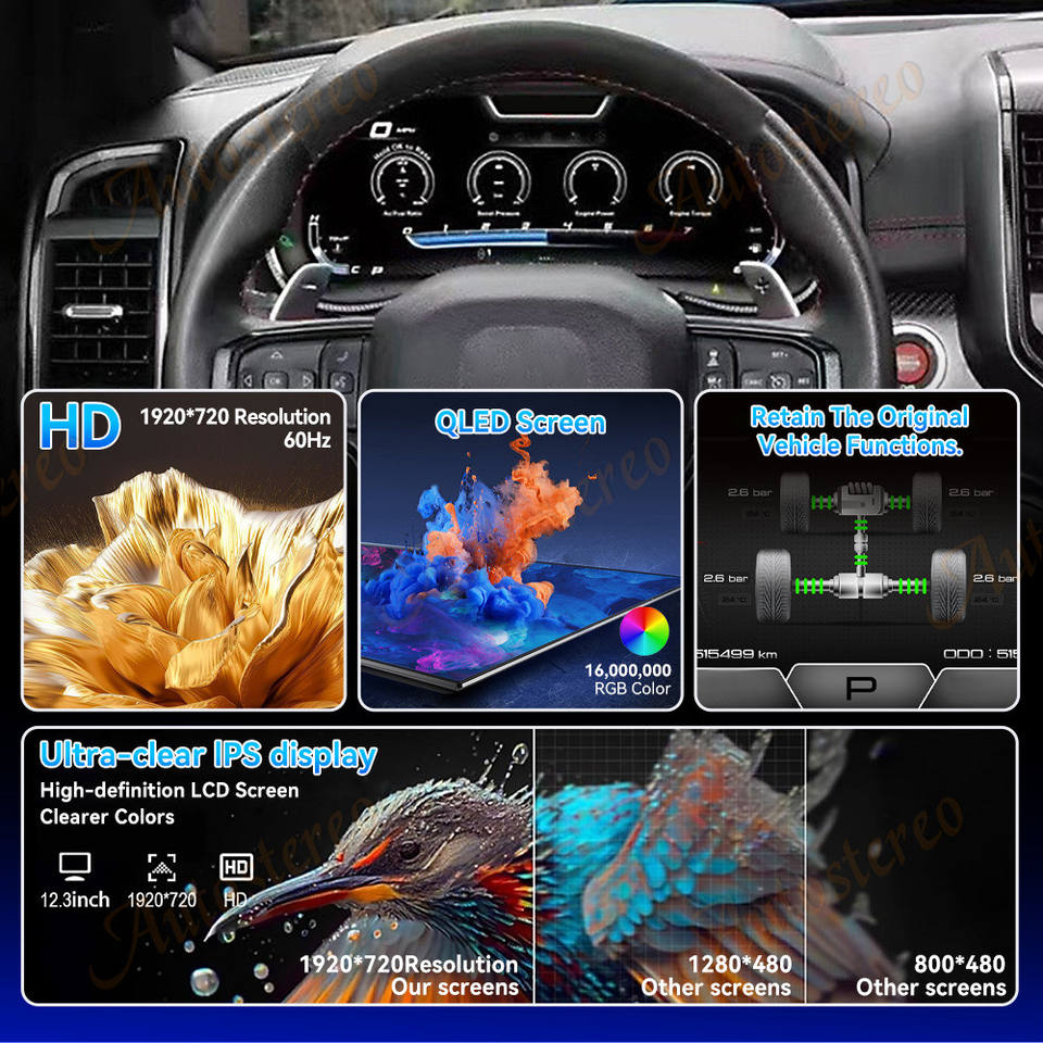 หน้าจอแสดงผลดิจิตอล Virtual Cockpit สำหรับรถยนต์ Dodge RAM ปี 2019-2023 หน้าจอแสดงความเร็วแบบดิจิตอล หน่วยความเร็วไมล์/กม. พร้อมจอแสดงผลบนแผงหน้าปัด