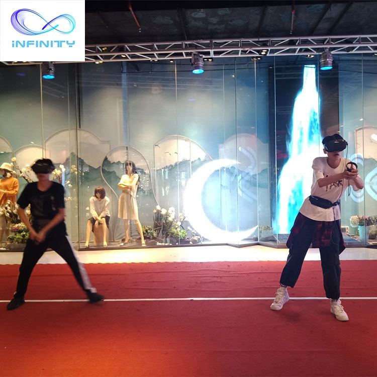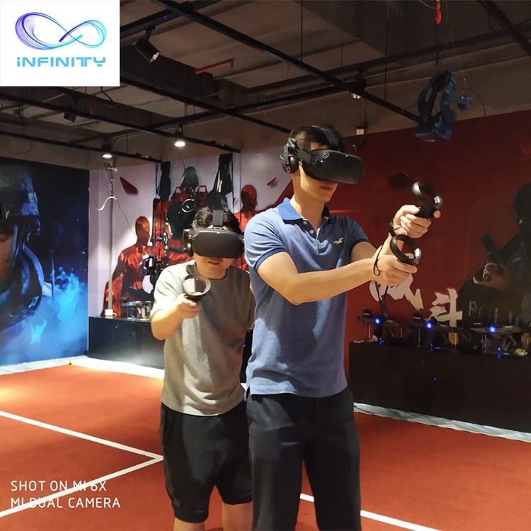 สวนสนุกเสมือนจริง VR เกมยิงปืนแบบผู้เล่นหลายคนในพื้นที่กว้าง อุปกรณ์ VR ยิงปืนแบบยืนสำหรับผู้เล่นหลายคน มีจำหน่าย