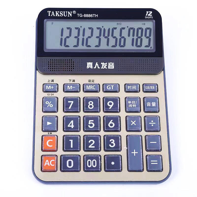 คุณธรรมและความศรัทธาเชื่อมต่อระหว่างกัน เครื่องคิดเลขเสียง Ts8886th 12 หลัก สีทอง แบบตั้งโต๊ะ พร้อมช่องใส่แบตเตอรี่ สำหรับใช้ในสำนักงาน