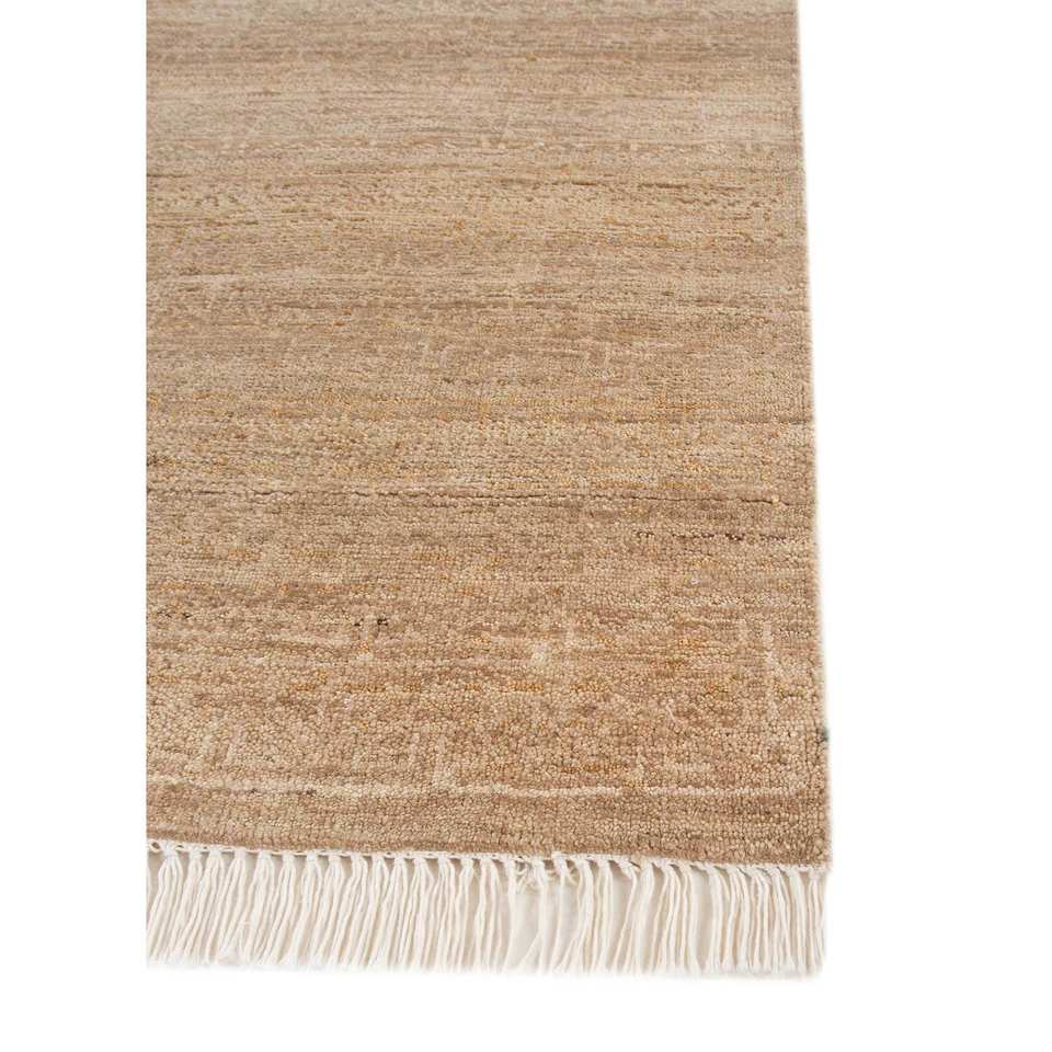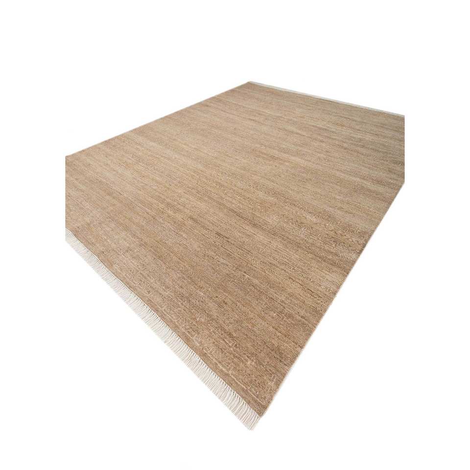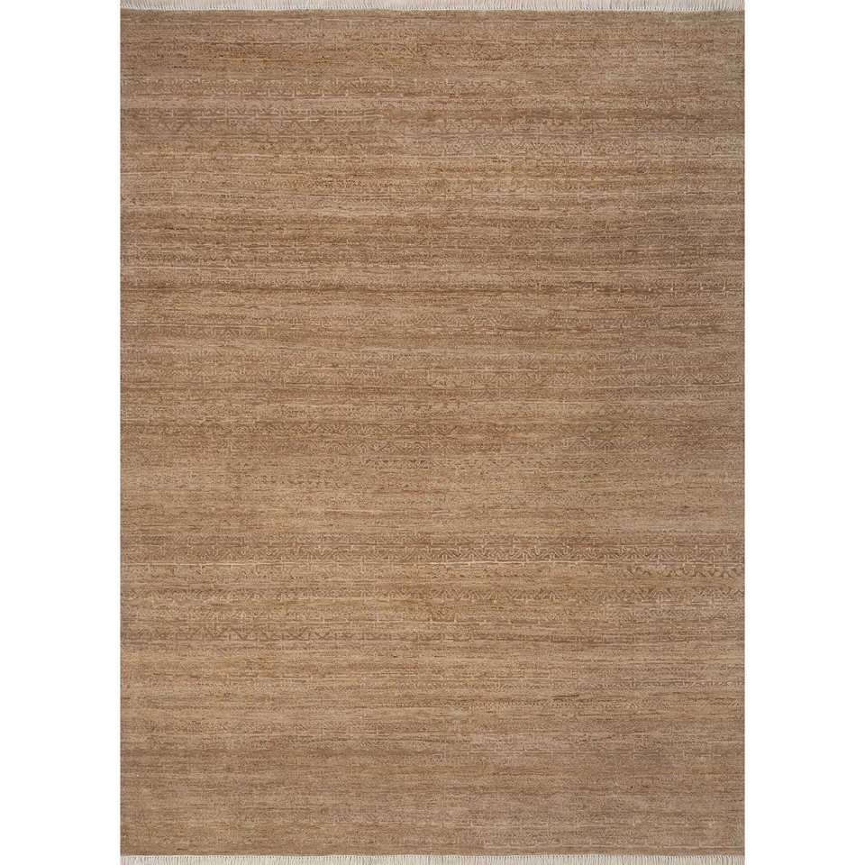 พรมขนสัตว์ลายทางสีเบจและสีน้ำตาลวิสกายา ทอมือแบบอัฟกัน รุ่น Lnr-3119 ขนาด 9x12 ฟุต สำหรับตกแต่งห้องนั่งเล่นวัยรุ่น