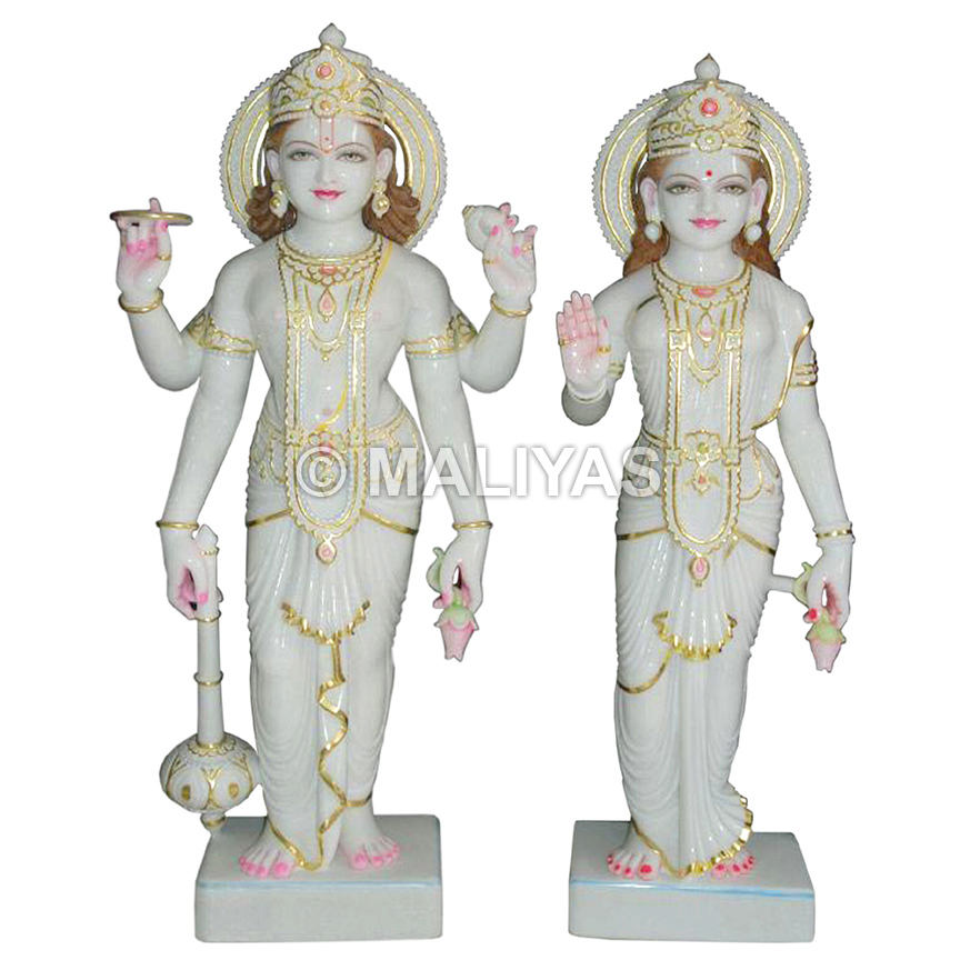 พระวิสุทธุ์และพระลาักษมี รูปปั้นหินอ่อน | รูปปั้นหินอ่อนพระวิสุทธิ์และพระแม่ศรีศรีประทับธารณีสตรี งานฝีมือสีขาวบริสุทธิ์ – มาลียาส