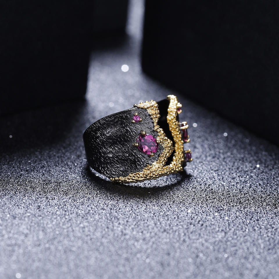 ชุดเครื่องประดับแหวนและกำไลข้อมือวินเทจลายทับทิม Vision Rose ประดับพลอยเงินแท้ 925 ชุบทอง