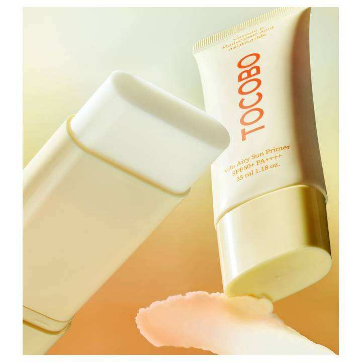 ไวท์ แอร์รี่ ซัน ไพรเมอร์ 35 มล. ปกป้องผิวจากรังสี UV แบบ Broad Spectrum SPF50+ PA++++ ผสมวิตามินอีและมาเดคัซิก แอซิด เนื้อบาล์มเนียนนุ่ม สกินแคร์เกาหลี