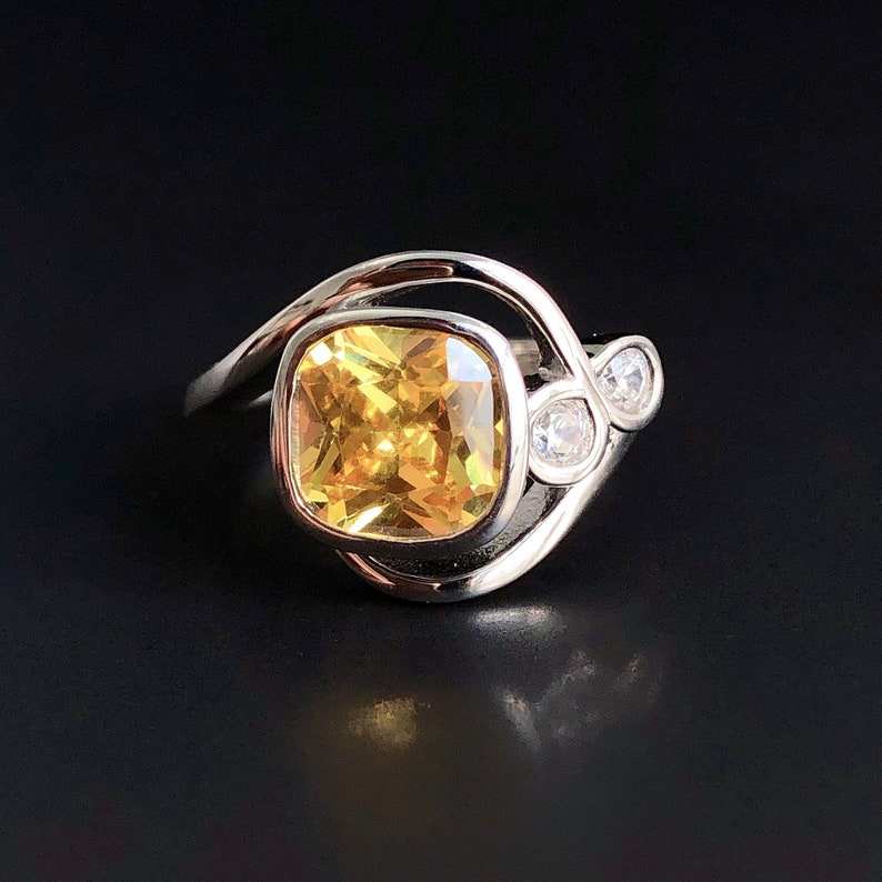 แหวนเงินแท้ประดับพลอยซิทรินสีเหลืองสดใส ของขวัญวันครบรอบแต่งงานครบรอบ 13 ปี สำหรับผู้หญิง (ประจำเดือนพฤศจิกายน)