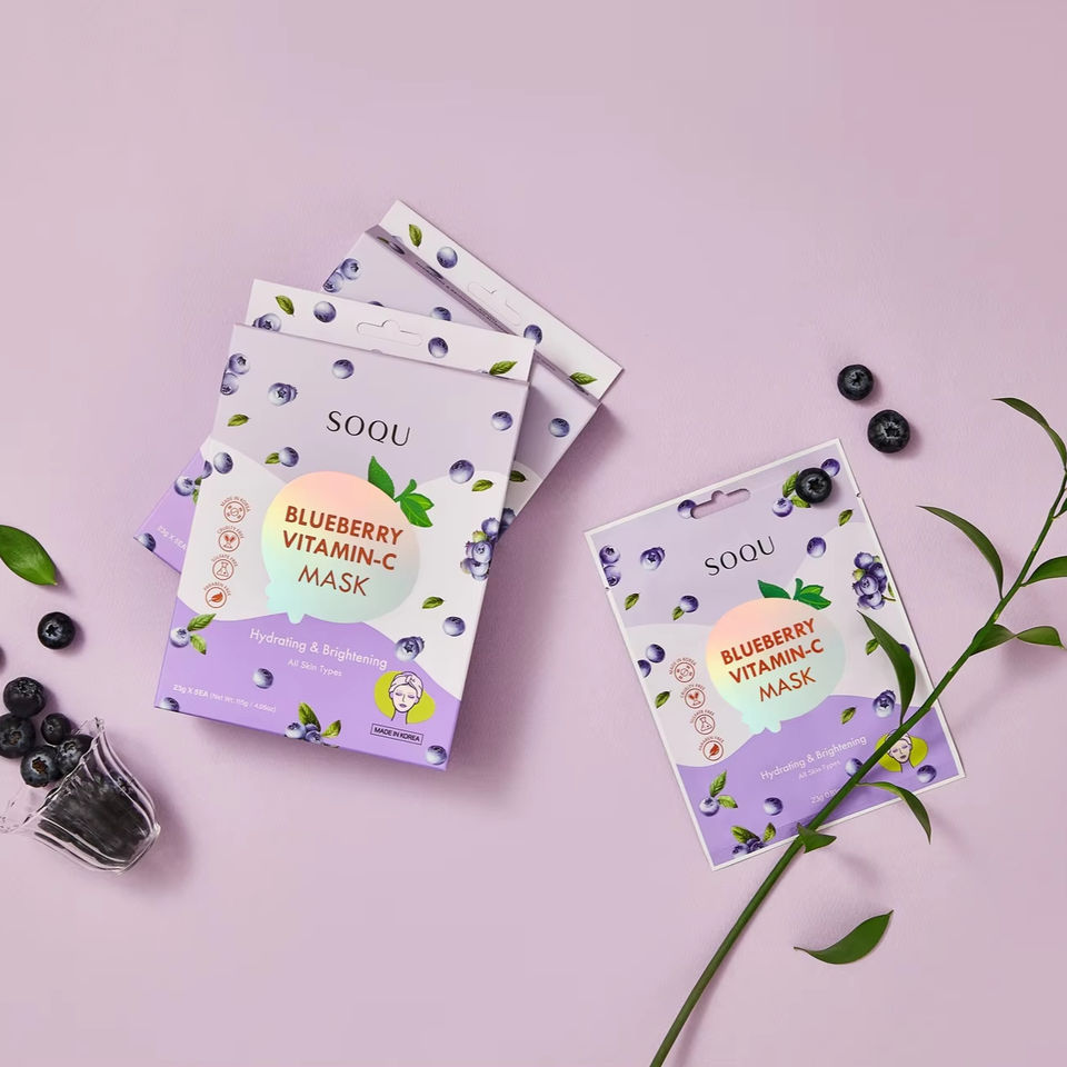 วิตามินมาส์ก (5/กล่อง) SOQU มาส์กบำรุงผิวหน้า ไฮเดรติ้ง แอนด์ ไบรท์เทนนิ่ง บลูเบอร์รี่ วิตามินซี _K beauty