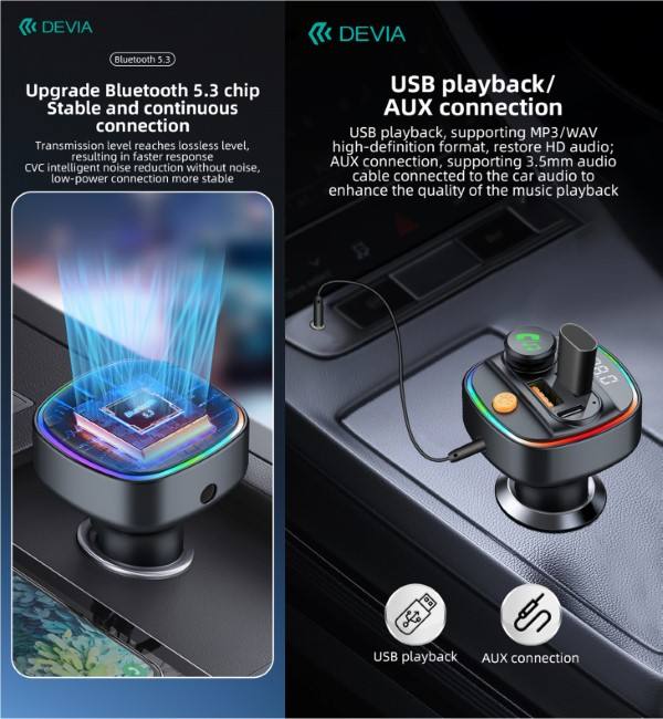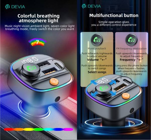 ที่ชาร์จในรถยนต์แบบวิวาโซล 30 วัตต์ 12-24 โวลต์ พร้อมช่องเสียบ USB และวิทยุ FM รองรับการเชื่อมต่อ AUX 5.3 เครื่องเล่น MP3 และแฟลชไดรฟ์