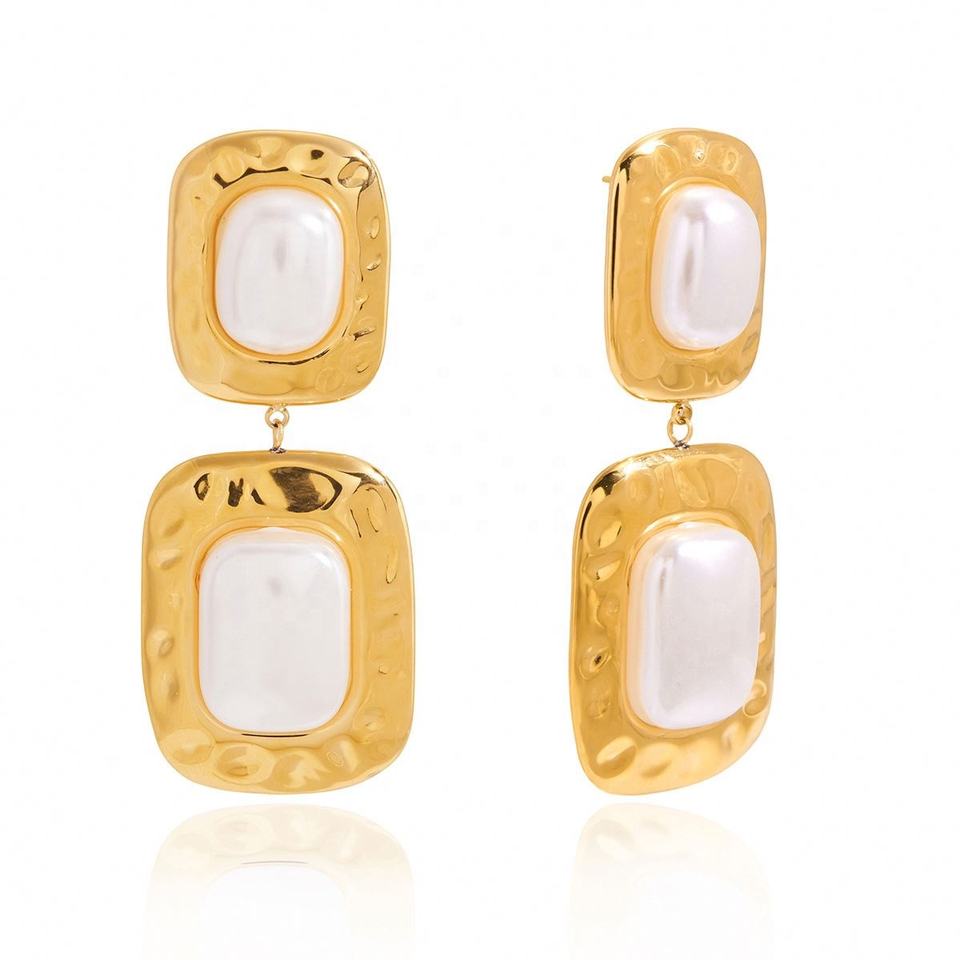 ต่างหูห้อยประดับมุกเรซิ่นลายค้อน สี่เหลี่ยม สไตล์หรูหรา วิเวียนทรา ทำจากสแตนเลสสตีลชุบทอง 18K เครื่องประดับสำหรับผู้หญิง