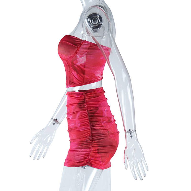 Viviblook ชุดกระโปรง2ชิ้นสำหรับผู้หญิงชุดกระโปรงไม่มีสายรัดพิมพ์ลาย ASST67ฤดูร้อน