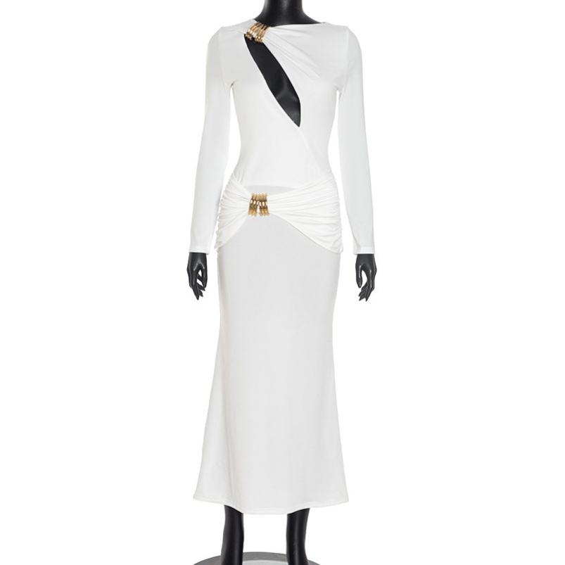 Viviblook ชุดเดรสยาวเซ็กซี่สำหรับผู้หญิง, ชุดเดรสแม็กซี่สองชั้นแน่นเปิดหลังลำลองสำหรับฤดูใบไม้ร่วง C25DS239