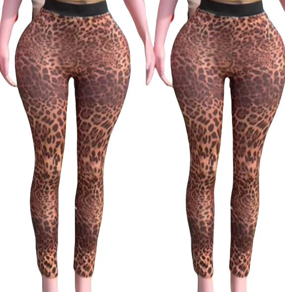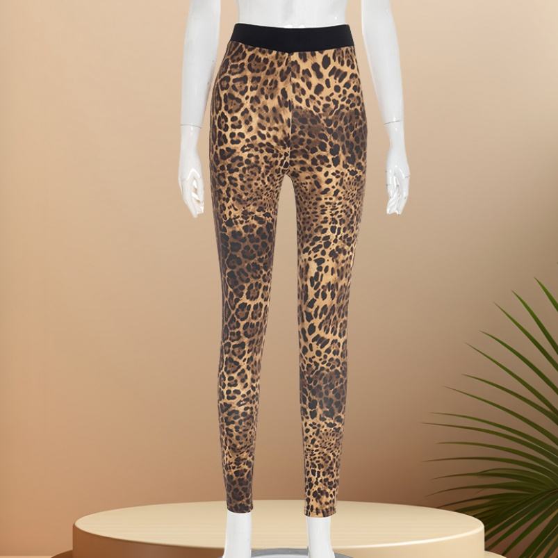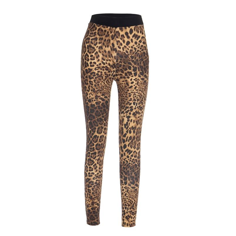 Viviblook กางเกงออกกำลังกาย D25PT315สำหรับผู้หญิงกางเกงฟิตเนสโยคะแนวสตรีทลำลองผ่าหน้าพิมพ์ลายเสือดาว
