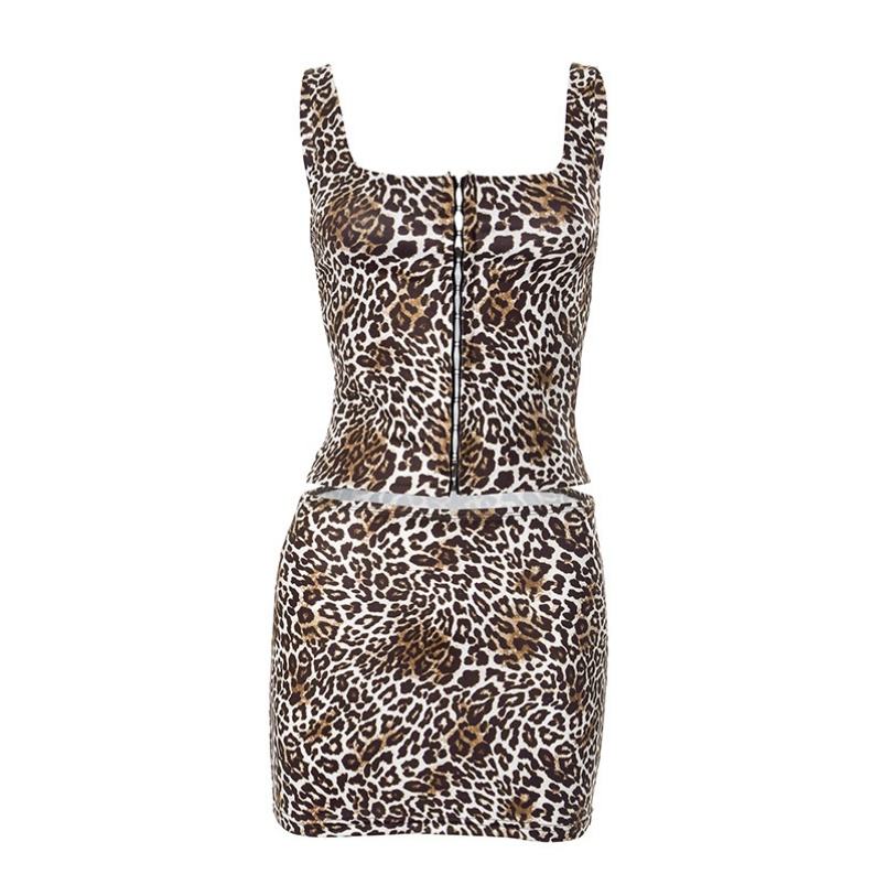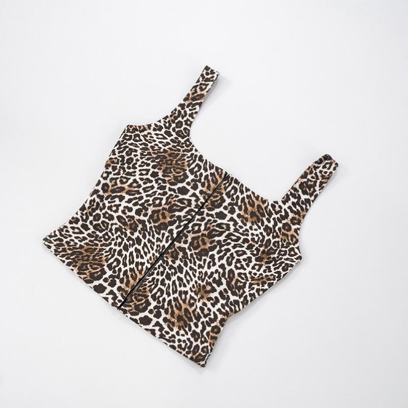 Viviblook ชุดฤดูร้อน D25ST125ลำลองสำหรับผู้หญิงเสื้อผ้า2ชิ้นแขนกุดพิมพ์ลายเสือดาวชุดเสื้อผ้า2ชิ้นสำหรับผู้หญิง
