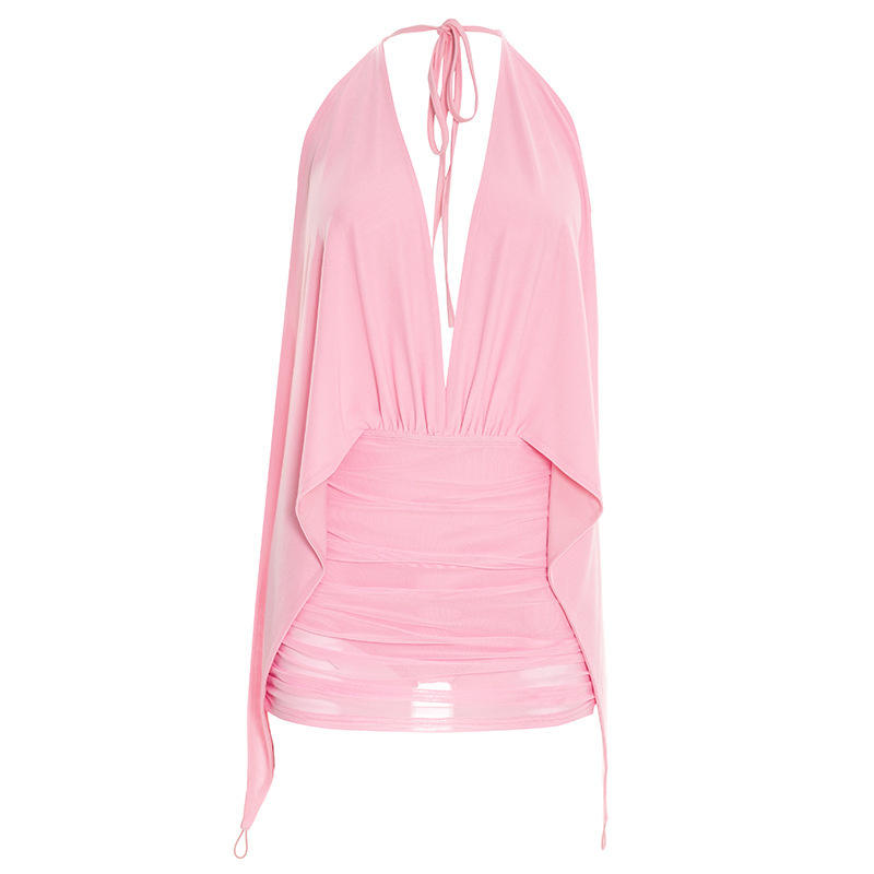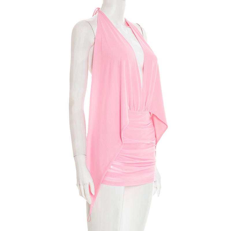 ชุดเดรสลำลองผู้หญิง Viviblook รุ่น D26DS041 แบบใหม่ เซ็กซี่ ผ้าตาข่าย สายคล้องคอ เปิดหลัง ชุดมินิเดรสสำหรับงานปาร์ตี้