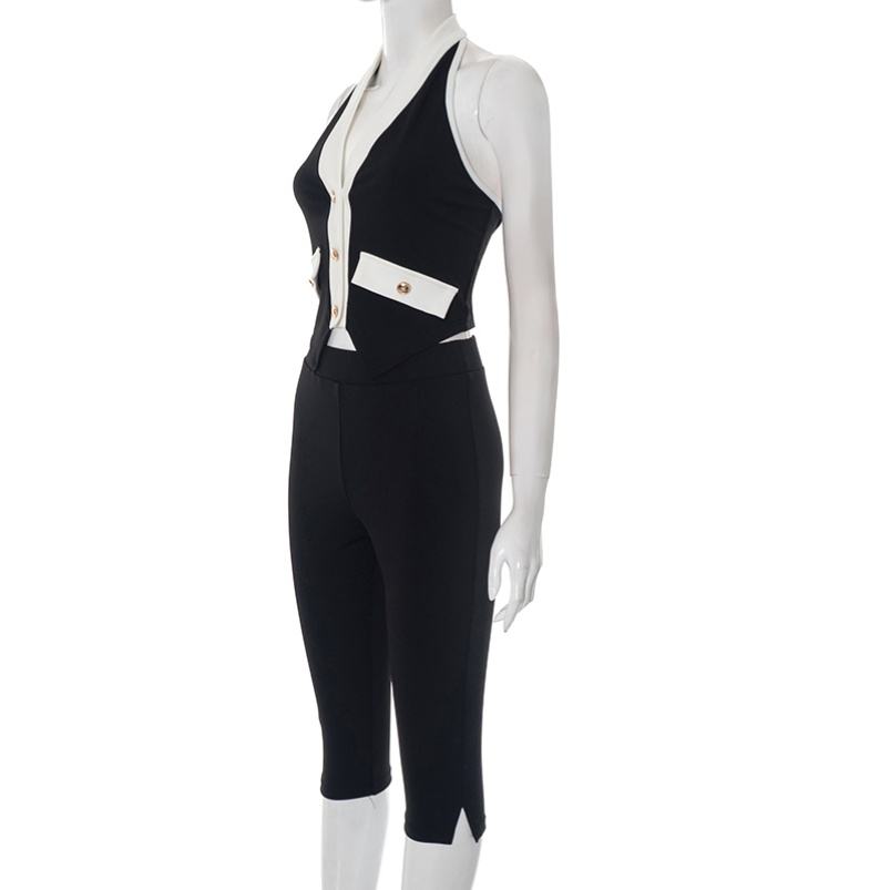 Viviblook J25ST124 Sexy Street Y2k Girls Sets V-neck Buckle Halter Backless tank Top Tight Fitting Cropped Pants Sets for Ladies
