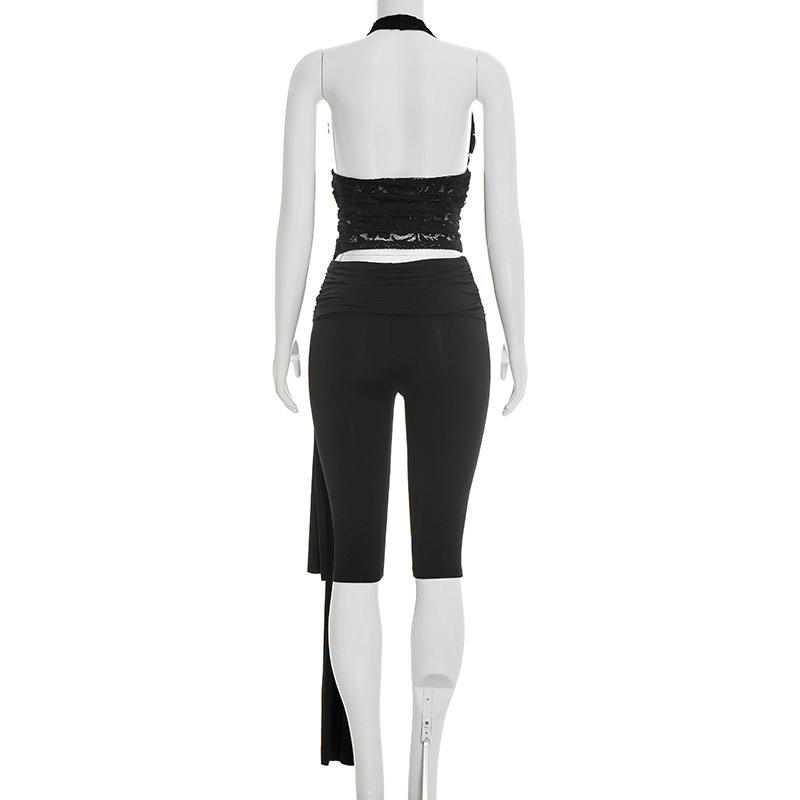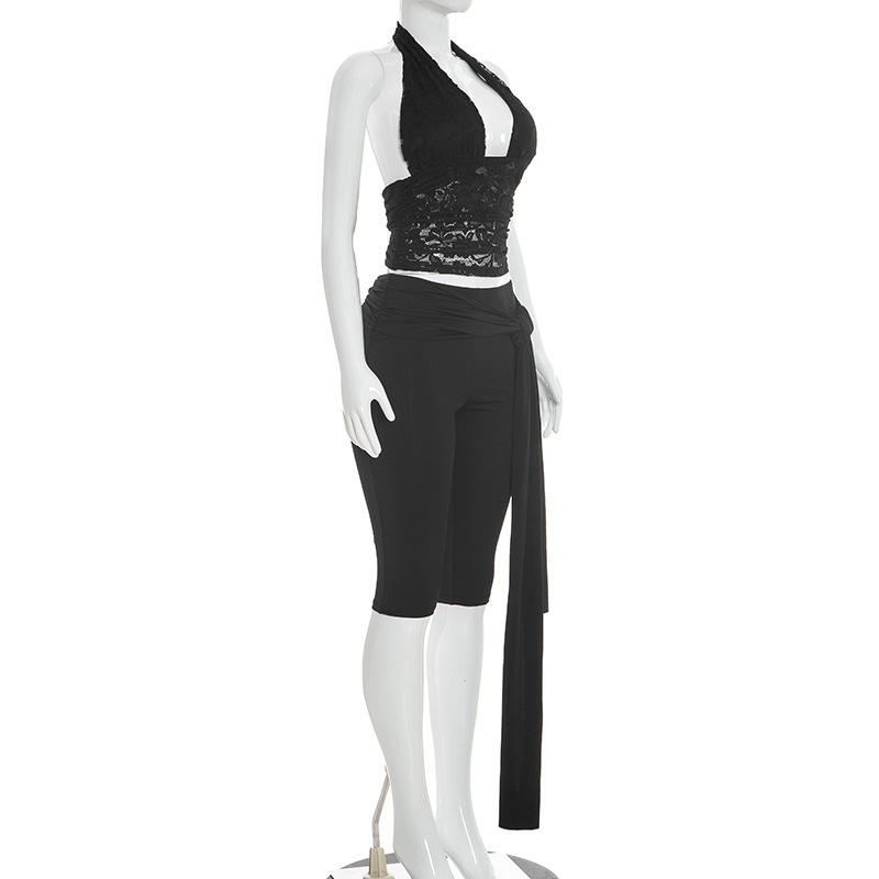 วิวิบลุค J26ST073 ชุดจับคู่ผู้หญิงใหม่เสื้อแขนกุดเซ็กซี่ลูกไม้เสื้อครอปกางเกงฤดูร้อนชุด 2 ชิ้น
