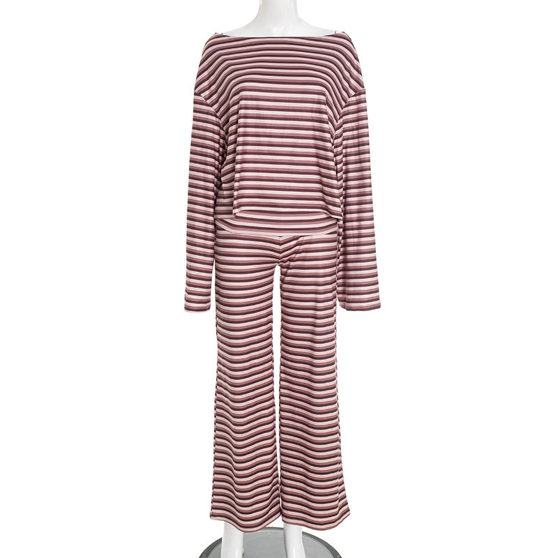 Viviblook Q25ST405 Women'S Casual Set Striped Long Sleeved and Long Pants Two Piece Set