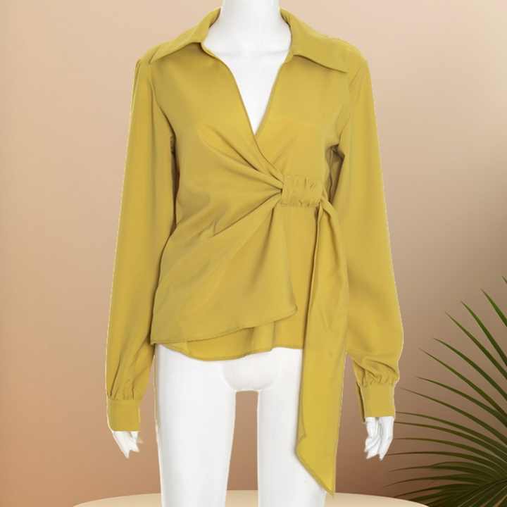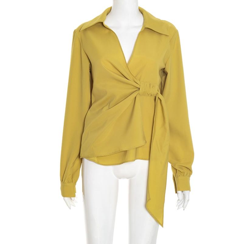 Viviblook เสื้อ2025 Q25TP266คอวีแขนยาวสำหรับผู้หญิงเสื้อชีฟองสีทึบใหม่สำหรับฤดูใบไม้ร่วง