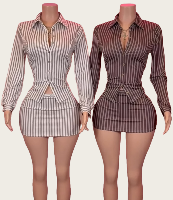 Viviblook ชุดสองชิ้นเสื้อแขนยาวลายทางมีกระดุมลายทางของผู้หญิงชุดสองชิ้นสำหรับฤดูใบไม้ร่วงฤดูหนาวของ Y25ST429