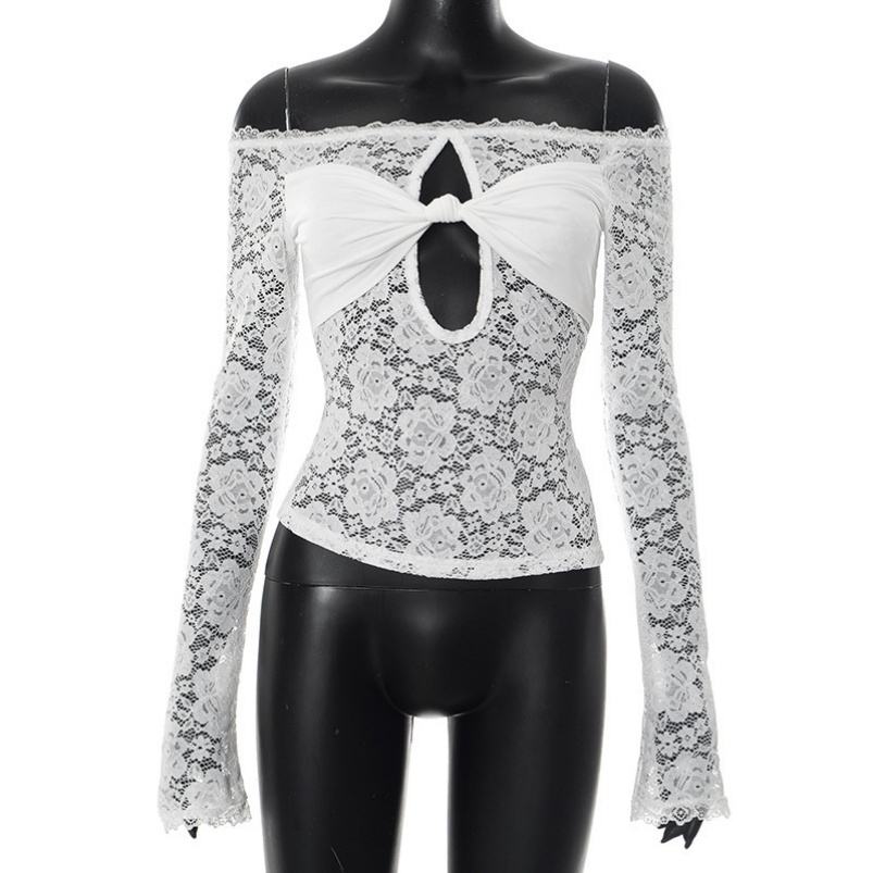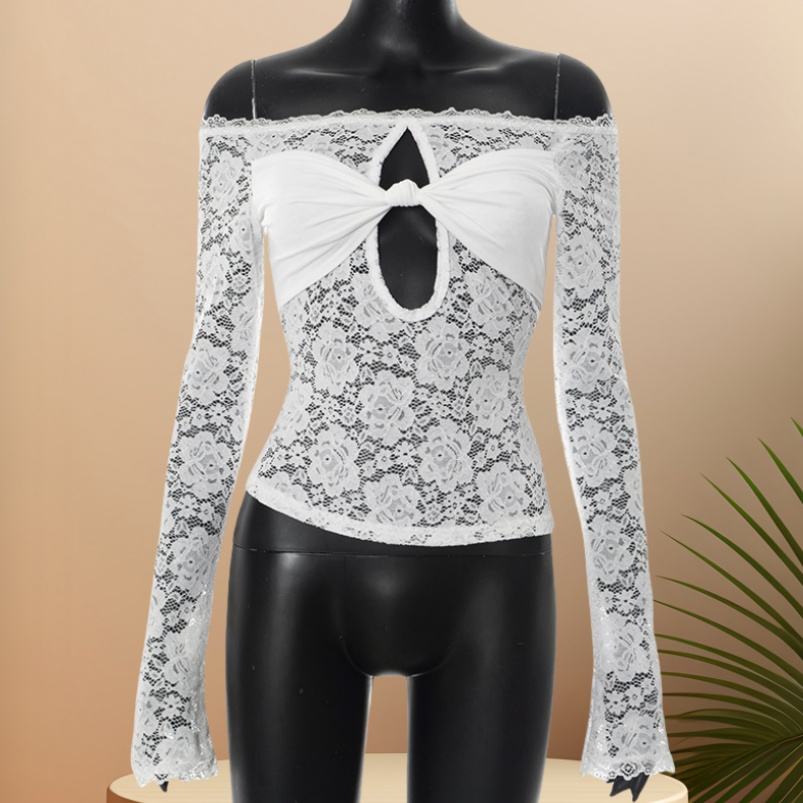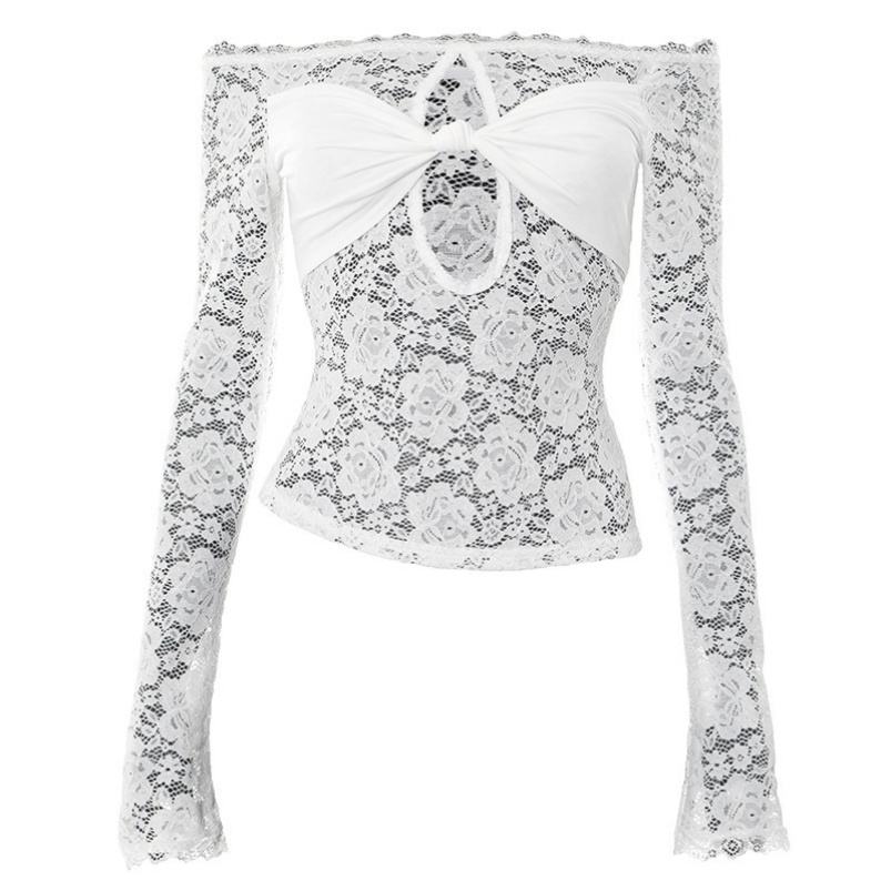 Viviblook Y25TP216 Y2K Vintage 2025 New Sexy Spicy Girl Style Tight Fitting off Shoulder Lace Top Crop Top for Women