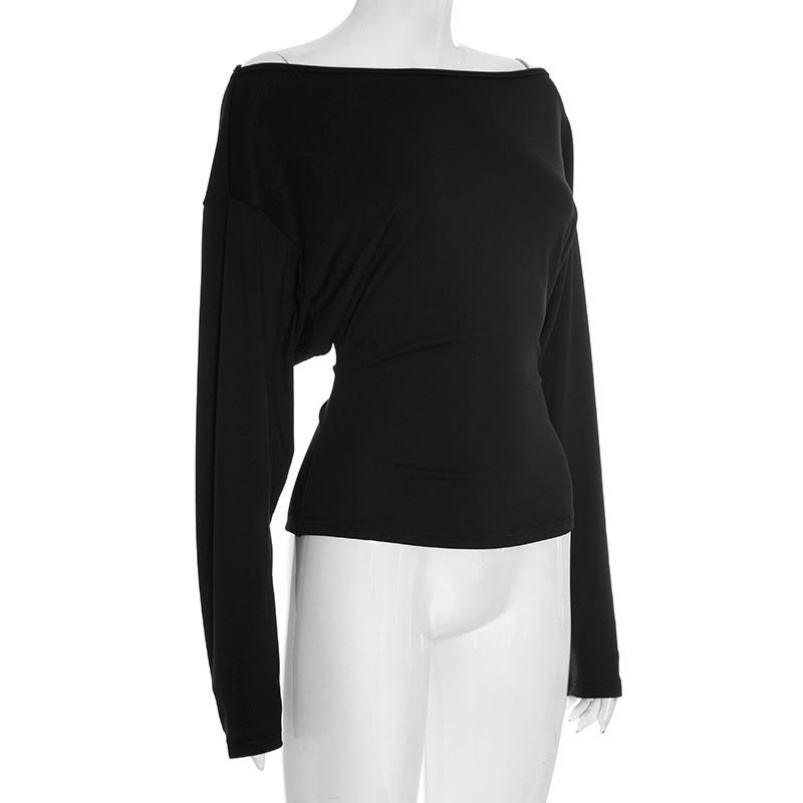 เสื้อครอปท็อป Viviblook รุ่น Y25TP365 สไตล์วินเทจ Y2K ปี 2025 แบบใหม่ เซ็กซี่ แขนค้างคาว คอเดียว รัดเอว สีพื้น สำหรับผู้หญิง