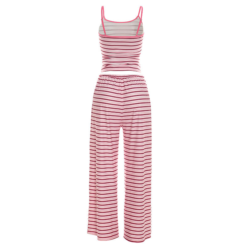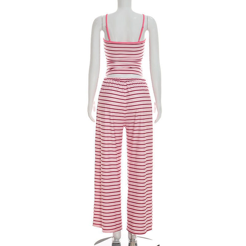 วิวิบลุค Y26ST110 ชุดสตรีฤดูใบไม้ผลิฤดูร้อนเสื้อกั๊กลายทางเอวสูงกางเกงทรงหลวมสองชิ้นชุดลำลอง